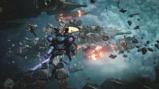 There's a mid-game sequence, for example, where an enormous swarm of tyranids attempt to hurl themselves bodily into a colossal power generator to try and destablise it. It's a wonderful visual—that perfect Warhammer mix of cool, scary, and completely absurd—but it's essentially a cross between wave-based survival and an escort mission, and the actual process of trying to keep the generator's health from ticking down while countless creatures much smaller and faster than you sprint at it is more tedious than epic.