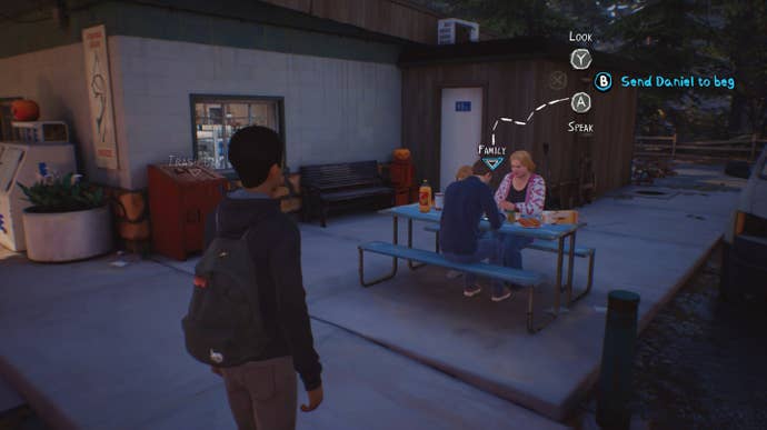 Mechanically, the biggest change to the Life Is Strange formula is the inclusion of Daniel, which essentially adds another layer to every choice you make. As his older brother, every decision influences Daniel, even the small ones. For instance, if you don't play with him when he asks, he may get sad and confused; if you shoplift, you're a bad influence. There's a lot of different factors to their relationship, and how you balance everything feels like it matters—though the final impact of our choices aren't truly evident yet.