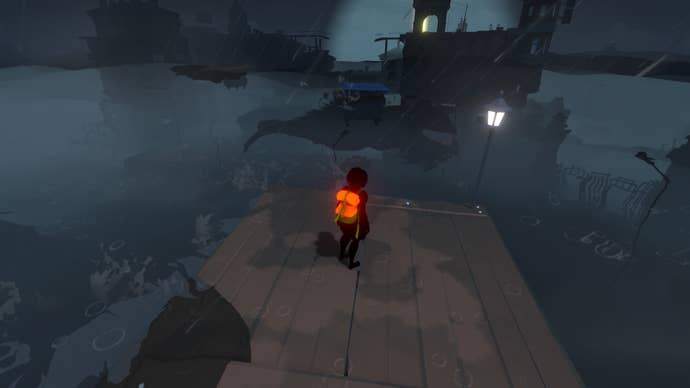 The occasional boss battle, where you never are literally fighting, is where the cumbersome side of Sea of Solitude is most prevalent. In one, you run around collecting orbs as shadows chase you, before absorbing shadows that are dogpiling on your glowing orb friend by standing still and opening up your backpack with a button prompt. Two hits from the shadows chasing you though, and you're dead. Another sequence has you chased by creatures when you pick up an object; one slight false step and they catch up to you quickly, effectively sending you back to the beginning of the sequence. Chase sequences are hardly enjoyable in most games, but here with the slow movement, imprecise jumps, and inconsistent AI, it's made worse.