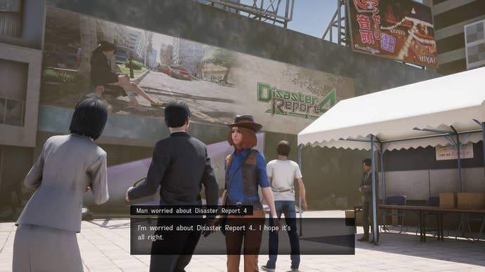 It's been weird to play Disaster Report 4 in light of everything that's going on in the world. I'm surprised that now, in the midst of a pandemic, the disaster game we've been waiting to play for nearly a decade is here. Even in-game, NPCs act surprised at the fact that Disaster Report 4 exists—there are in-game posters everywhere, and one NPC even references its doomed release.