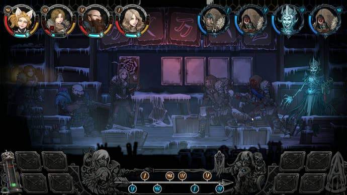 Vambrace: Cold Soul begins a lot like Darkest Dungeon, with the protagonist finding out about a secret past from the will of a dead relative. In this case, Evelia Lyric inherits a the eponymous vambrace from her adventurous father. Her dad's final wish is for her to take the bracer to the lost city of Icenaire. There, a band of survivors trapped in an eternal wall of ice fight against the undead army of the King of Shades. The bracer can open holes in the cursed ice, which allows Lyric and a chosen band of adventurers to journey into the rest of the city and reclaim it from the undead.