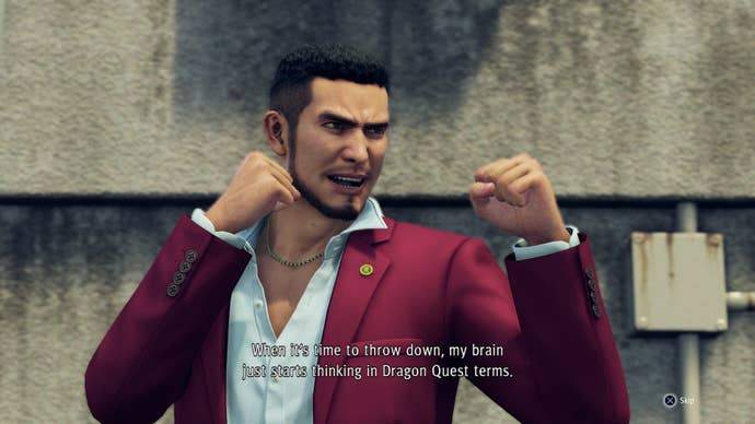 Previous Yakuza games centered themselves around the monolithic Kiryu, who never seemed to find a power ceiling he couldn't break. In that sense, the change of perspective to Ichiban might be one of the best aspects of this story. Ichiban starts the story weak, alone, and out of his element, yet his unyielding passion and drive to do good in the world (emphasized by his obsession with the Dragon Quest series) is infectious. He's easy to like, root for, and takes up the mantle of Yakuza protagonist well.
