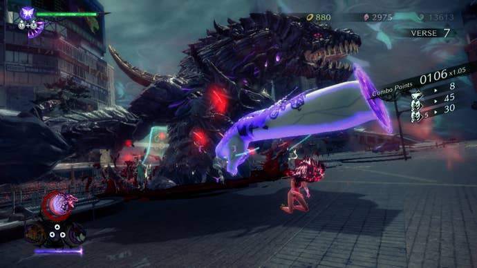 The result is downtime that feels like uptime; exhilarating exploration and knowing little secrets that make you grin and say “you bastard” when you finally find them – even if it took you about 20 minutes of slipshod platforming. There are niggles with the camera (especially in some of the harder ‘the floor is lava’ challenges) and the lock-on sometimes leaves a lot to be desired… but when you can just summon a demon made of hair and rage at the entire arena until you win, you soon forget about these little quirks.